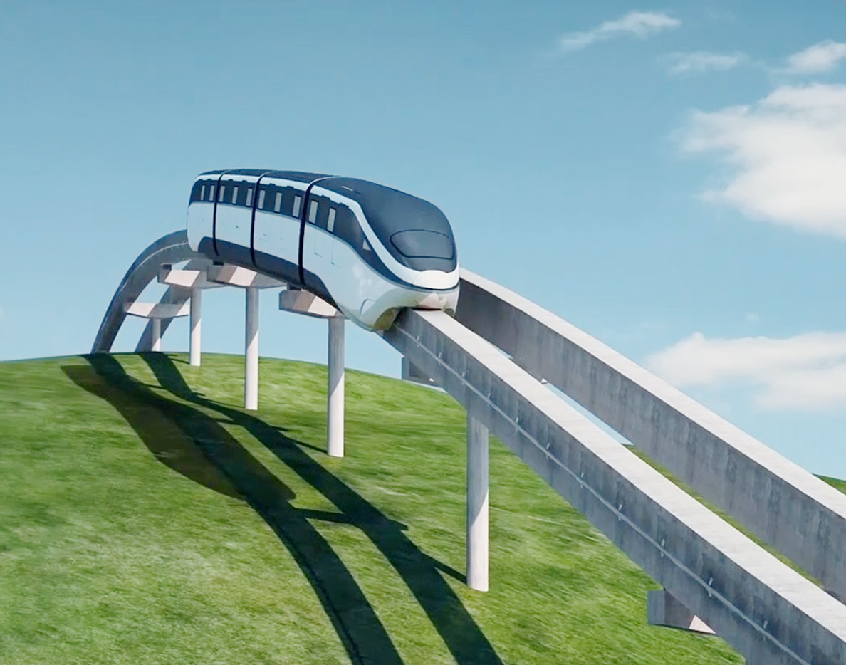 BYD’s SkyRail solves urban congestion and transit challenges without the significant infrastructure costs, construction timelines or traffic problems caused by typical rail projects. SkyRail is an advanced monorail train that runs on an elevated single track beam that supports, stabilizes and guides the carriages.